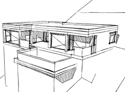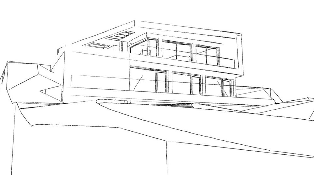Siguiendo las instrucciones del cliente se ha optado por un diseño sencillo y un único volumen. Cuenta con grandes ventanales, una piscina "infinita" con rebosadero bilateral y una terraza parcialmente cubierta.