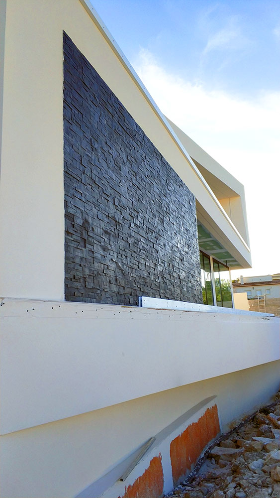 Nuestro trabajo como nueva Dirección Facultativa fue la adaptación de la obra a la normativa vigente, reanudar los trabajos de construcción y supervisar la terminación de la construcción de la vivienda. También coordinamos la modificación del muro de contención de terreno, que después de la intervención se presenta de forma escalonada para respetar las limitaciones de altura vigentes.