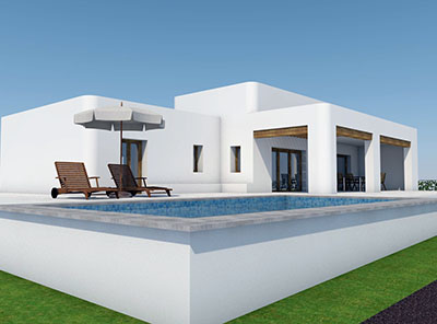 Vivienda unifamiliar moderna de tres dormitorios.